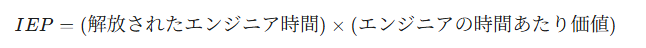| エンジニアリング生産性向上 (IEP) | 5名 × 480時間/年 × 時間価値5万円 | 1億2,000万円 |